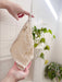 Made from sisal (agave plant) fibers with cotton straps. 100% biodegradable and plastic-free.
